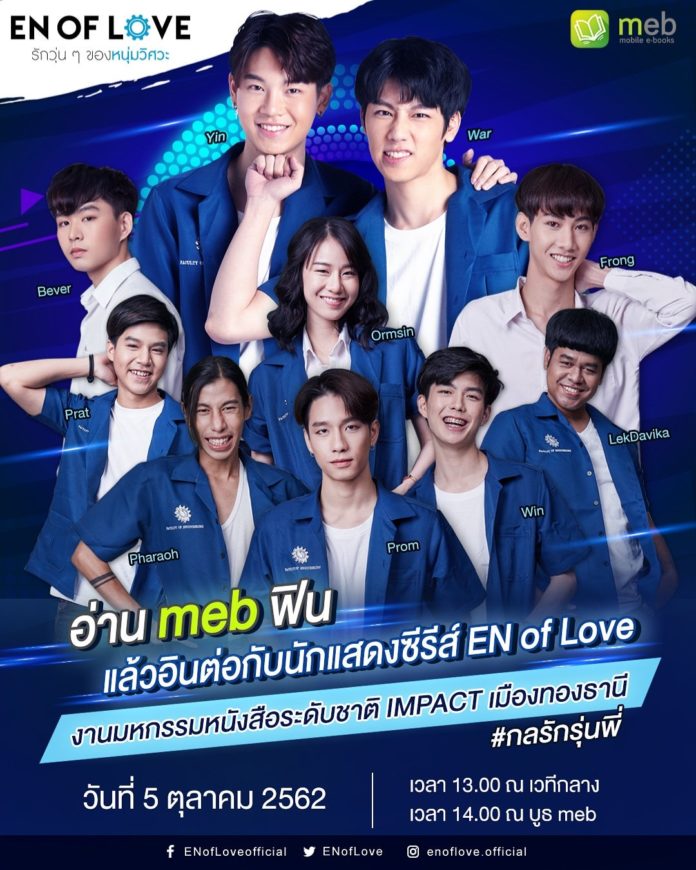 วันที่ 5 ตุลาคมนี้ เหล่านักแสดงงจาก EN of Love ตอน กลรักรุ่นพี่ จะมาพบปะกับน้องๆ ในงาน มหกรรมหนังสือ ระดับชาติ IMPACT เมืองทองธานี